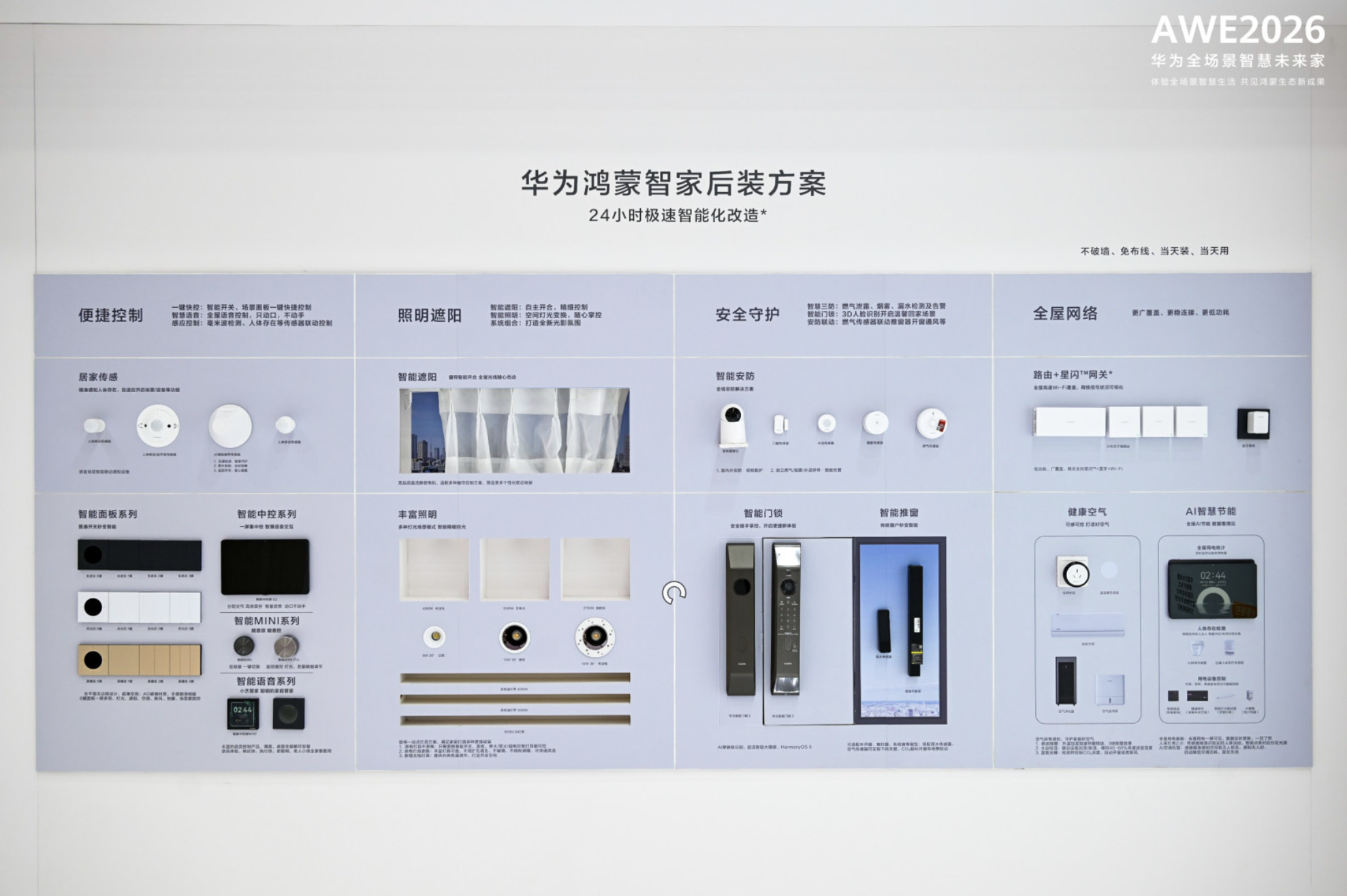 对于普通消费者来讲,“高改造门槛、高投入成本”一直是阻碍消费者体验空间智改的核心障碍,但华为鸿蒙智家却给到了贴心灵活的解决方案。面向早已装修完入住的用户,华为鸿蒙智家提供累计工时最快24小时原地换新家的后装解决方案,带来不破墙免布线、当天装当天用的后装体验,有房就能装。同时,后装解决方案还提供了不同套餐供消费者选择,智改尝鲜组合9999元起。套餐之外,华为鸿蒙智家同样具备局部场景定制能力,客厅、卫浴、卧室、儿童房皆可智改,不仅能实现语音控制全屋灯光、空调、窗帘,还支持远程开启空调凉房、看家安防等智能模式,显著降低家庭智能化升级门槛,真正实现智改方案快速落地,让华为鸿蒙智家成为灵活智改安心之选。